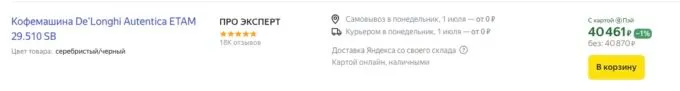 Обычно такие кофемашины стоят под 60 косарей, но сейчас на Яндекс Маркете топовую De’Longhi Autentica можно урвать всего за 40 870 рублей. Также не забывайте про кэшбек, которые некоторые банки готовы отсыпать за покупки на этой платформе.