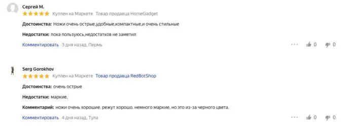 В отзывах люди хвалят HuoHou Kitchen Knife Set за высокое качество материалов, хорошую заточку с завода и шикарный дизайн. Такой набор даже не стыдно дарить друзьям или родственникам, поскольку он и выглядит круто, и со своими задачами справляется не хуже конкурентов.