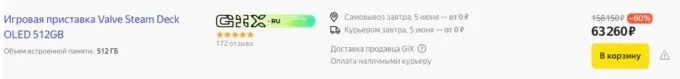 Обычно за Steam Deck OLED просят от 75 косарей, но прямо сейчас на Яндекс Маркете лучшую консоль десятилетия можно урвать всего за 63 260 рублей.