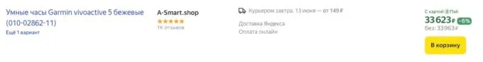 Сейчас на Яндекс Маркете новенькие Garmin vivoactive 5 можно купить всего за 33 960 рублей, а с кэшбеками некоторых банков они обойдутся около 30 тысяч рублей.
