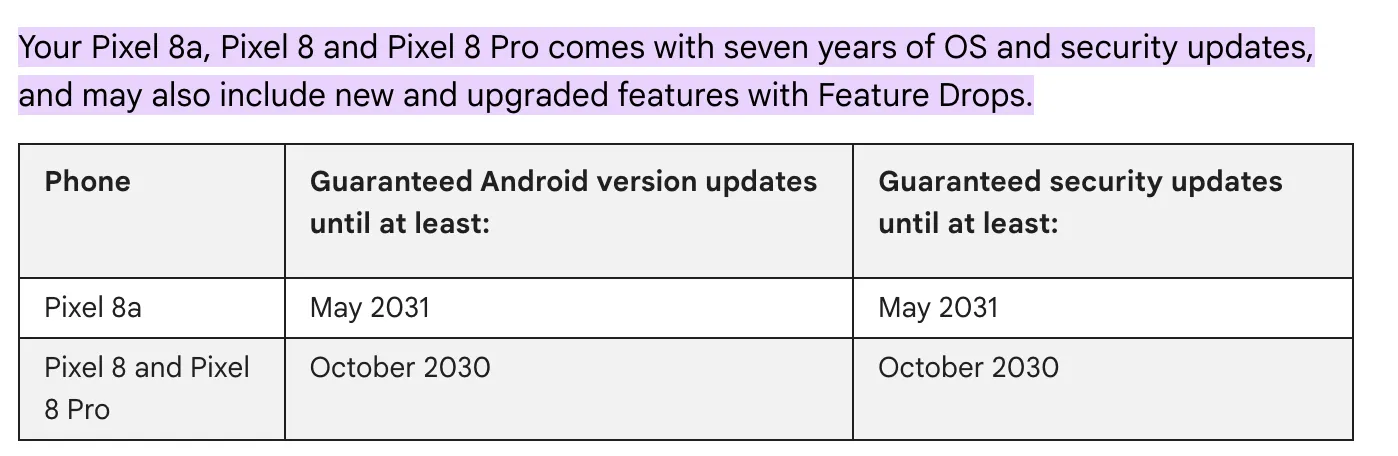 Причем IT-гиганты не разделяют обновления Android и патчи безопасности. Так, вышедший в конце 2023-го Google Pixel 8 Pro получит последнюю версию Android и патч безопасности в 2030 году.