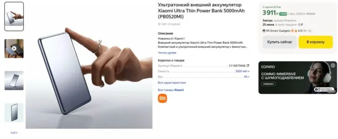Прямо сейчас Xiaomi Ultra-Thin Power Bank можно урвать на Яндекс Маркете всего за 3950 рублей, а с кэшбеками некоторых банков можно сэкономить до 30% с этой покупки.