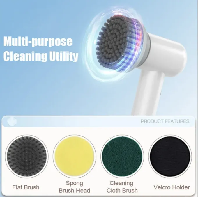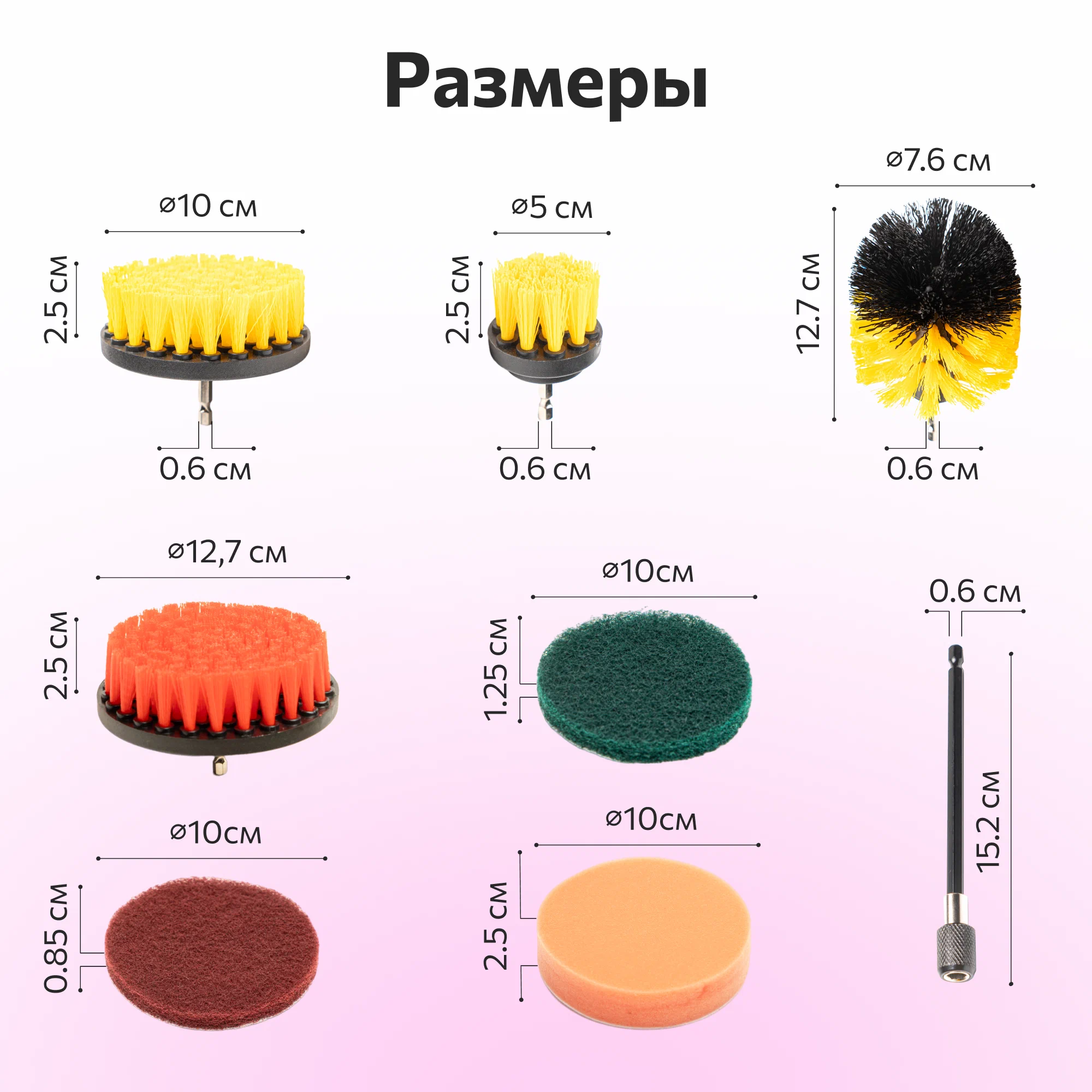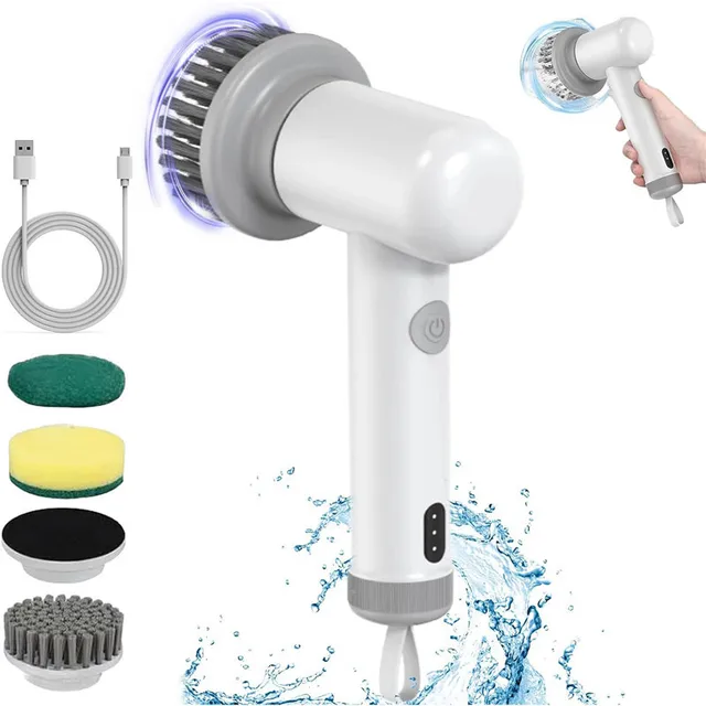 Что это такое? По сути, электрический двигатель, спрятанный в ручке, с возможностью прикреплять различные насадки. В комплекте их четыре штуки — от самой мягкой (для мыться посуды) до насадки с самыми жесткими щетинками. Последняя пригодится, чтобы оттереть известковый налет от унитаза или удалить въевшуюся в ламинат грязь.
