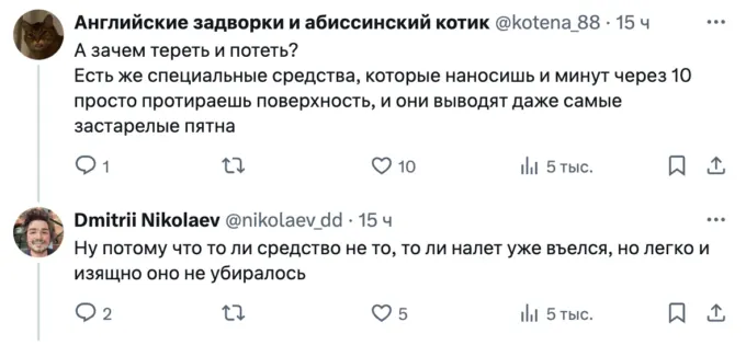 Пользователь твиттера Дмитрий Николаев рассказал об электрическом скребке. Это штука, по его словам, здорово помогла отмыть налет со стекол в душевой и отчистила смеситель.