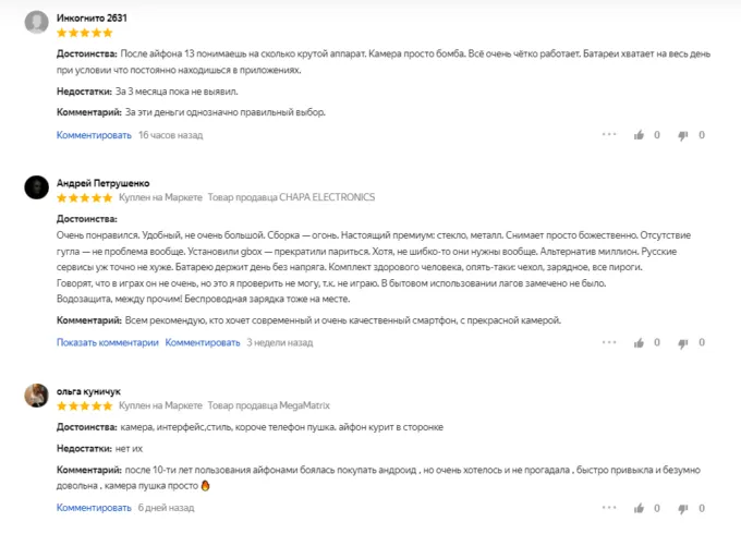 Кстати, на странице товара куча положительных отзывов — вот некоторые из них: