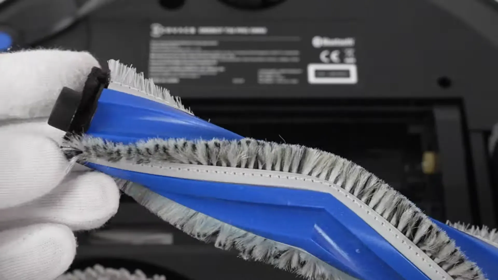 Щетка DEEBOT T30 PRO OMNI имеет силиконовую основу и вставки из ворса. Эта щетка устанавливается на базе, где есть подобие расчески, не позволяющей запутываться волосам. Сзади в нижней части находятся два круглых держателя с салфеткам для мойки пола. Также на базе есть пространство для хранения мешка для мусора — он довольно объемный и его можно менять раз в 150 дней. А еще внутри станции располагается площадка для сушки влажных салфеток и баки для чистой и грязной воды.