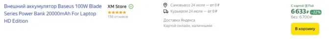 Прямо сейчас флагманский внешний аккумулятор Baseus Blade HD на 100 Вт можно урвать на Яндекс Маркете всего за 6700 рублей.
