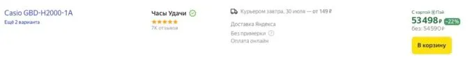 Обычно за флагманские Casio G-Shock GBD-H2000-1A просят около 85 косарей, но сейчас их можно забрать на Яндекс Маркете всего за 54 590 рублей. Также не забывайте, что некоторые банки предлагают кэшбеки за покупку на этой площадке.