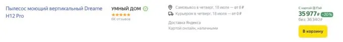 Обычно за Dreame H12 Pro просят около 60 косарей, но прямо сейчас на Яндекс Маркете флагманский моющий пылесос можно забрать всего за 36 340 рублей. Также не забывайте про кэшбеки, которые позволят сэкономить ещё больше.