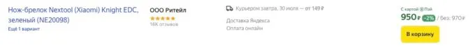 Прямо сейчас компактный мультитул Xiaomi NexTool Mini Knife можно забрать на Яндекс Маркете за 950 рублей. А с кэшбеками некоторых банков вы можете сэкономить до 30% с покупок на этой платформе.
