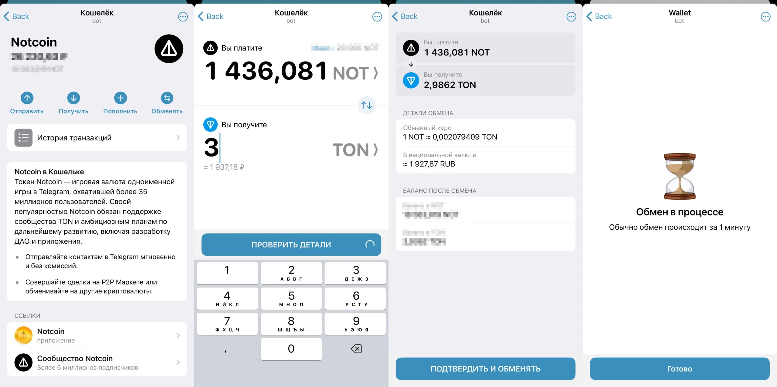 - Жмем на кнопку «Обменять», попадаем в меню конвертации. Тут нужно выбрать необходимую сумму в TON. Например, за подписку на полгода точно хватит 3 TON.