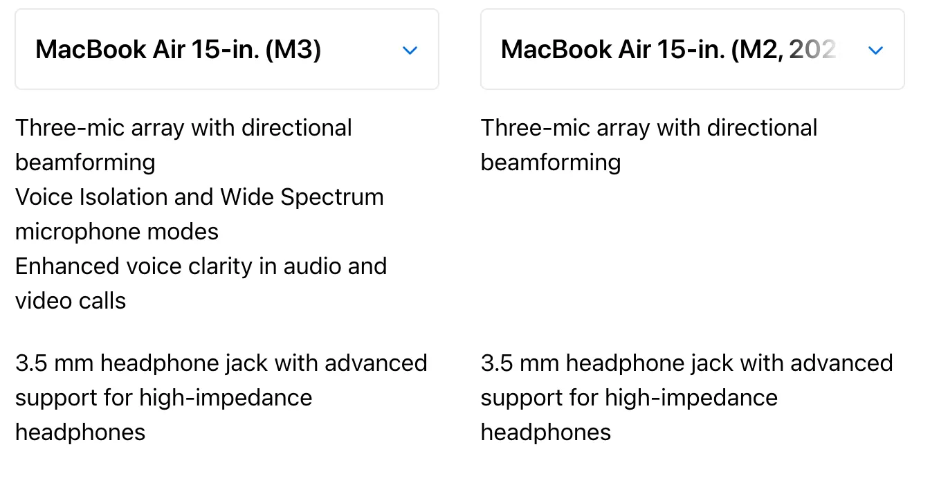 Но крохотный апгрейд есть. Во-первых, новый чип M3, который чуточку быстрее M2, во-вторых, наличие аппаратной трассировки лучей (польза этой фичи обсуждается), в-третьих, поддержка Wi-Fi 6E, в-четвертых, пара улучшающих процесс общения по видеосвязи фишек.
