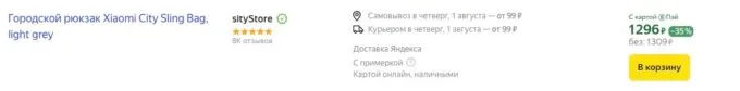 Сейчас Xiaomi City Sling Bag сливают на Яндекс Маркете за 1309 рублей. А с кэшбеком некоторых банков вы сможете сэкономить до 30% с покупок на этой платформе.
