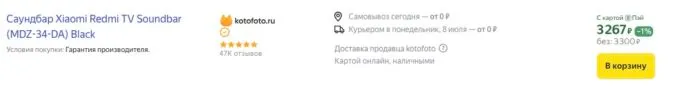 Теперь к главному — прямо сейчас на Яндекс Маркете популярный Xiaomi Redmi TV Soundbar можно урвать всего за 3300 рублей. А с кэшбеками некоторых банков он обойдётся даже дешевле 3 тысяч рублей.