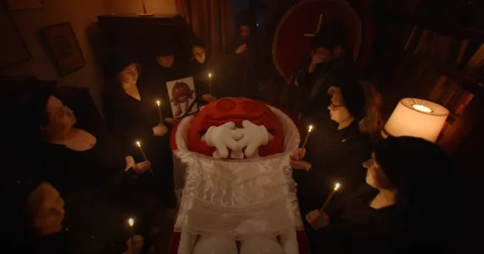 Сначала было очень странное видео с Рузилем Минекаевым из сериала «Слово пацана». Закончилось все похоронами красного M&M’s. Абсурдная комедия, как она есть, но уже в формате игрового скетча-пародии.