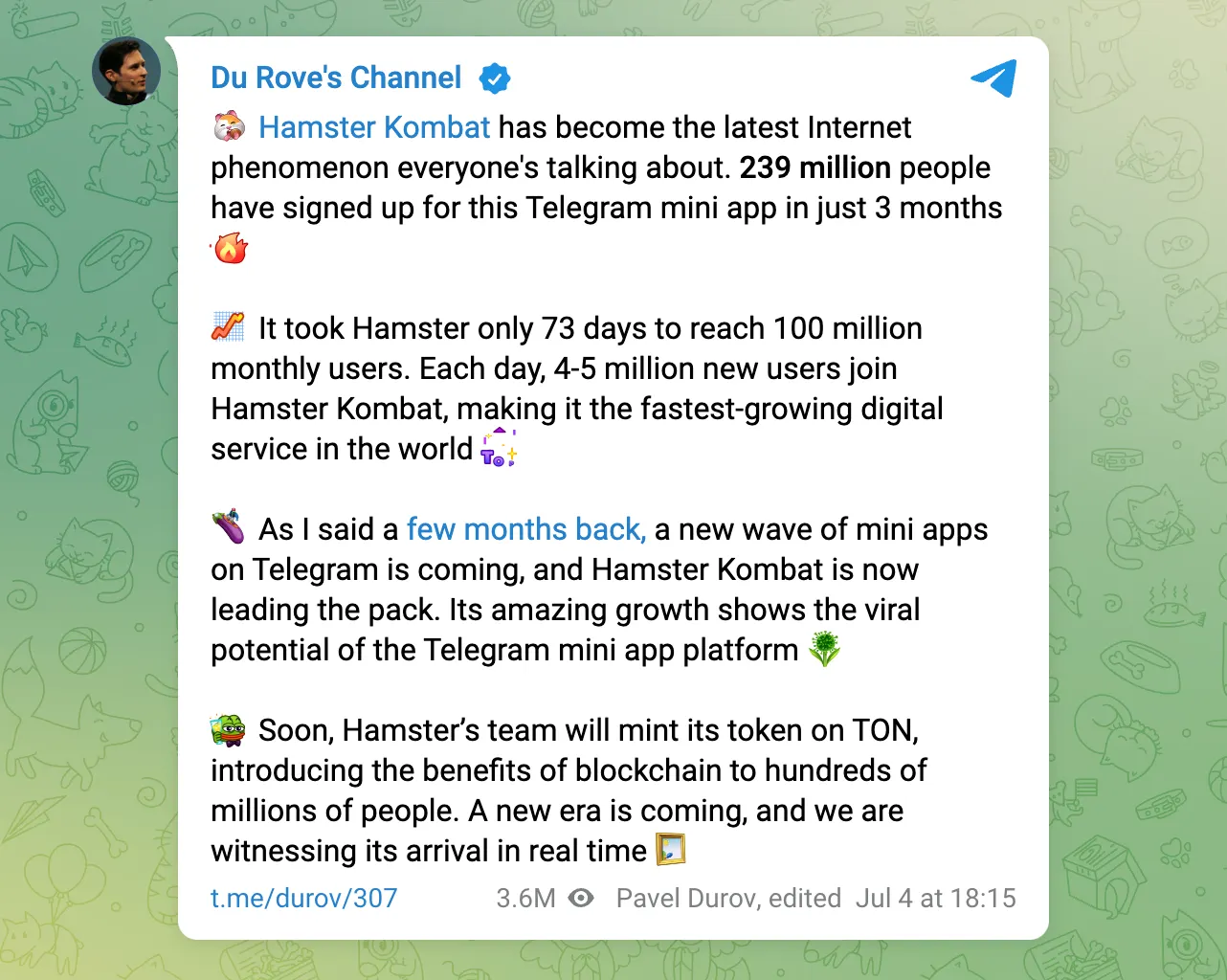 В конце июля журналисты раскрыли личность создателя Hamster Kombat. Им оказался Эдуард Гуринович — бизнесмен из Петербурга, запустивший сервис по продаже автомобилей CarPrice и аналог тиктока «Ямолодец».
