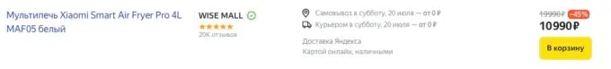 Обычно за Xiaomi Smart Air Fryer Pro просят под 16-17 косарей, но сейчас на Яндекс Маркете топовый аэрогриль для дома можно урвать всего за 10 990 рублей. А с кэшбеками некоторых банков он обойдётся ещё дешевле.