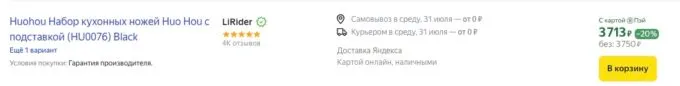 Прямо сейчас на Яндекс Маркете набор ножей Xiaomi HuoHou Kitchen Knife Set можно урвать за 3750 рублей, а с кэшбеком некоторых банков он обойдётся всего в 3,5 косаря.