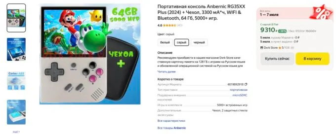 Обычно за Anbernic RG35XX Plus (2024) просят под 15 косарей, но сейчас на Яндекс Маркете лучшую консоль для ретро-эмуляции можно забрать за 9500 рублей. Также не забывайте, что некоторые банки готовы отсыпать кэшбек за покупки на этой площадке.