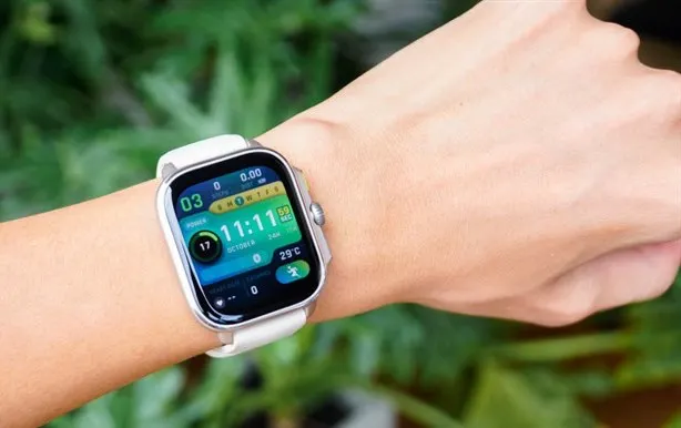 Amazfit Cheetah Square получили прочный алюминиевый корпус в цвете «натуральный титан». К качеству сборки и материалам претензий нет. На правом торце расположены две физические кнопки и колёсико для навигации по меню. Почти всю лицевую панель занимает 1,75-дюймовый AMOLED-экран с разрешением 390×450 пикселей. Разумеется, функция Always-On Display тут тоже есть.