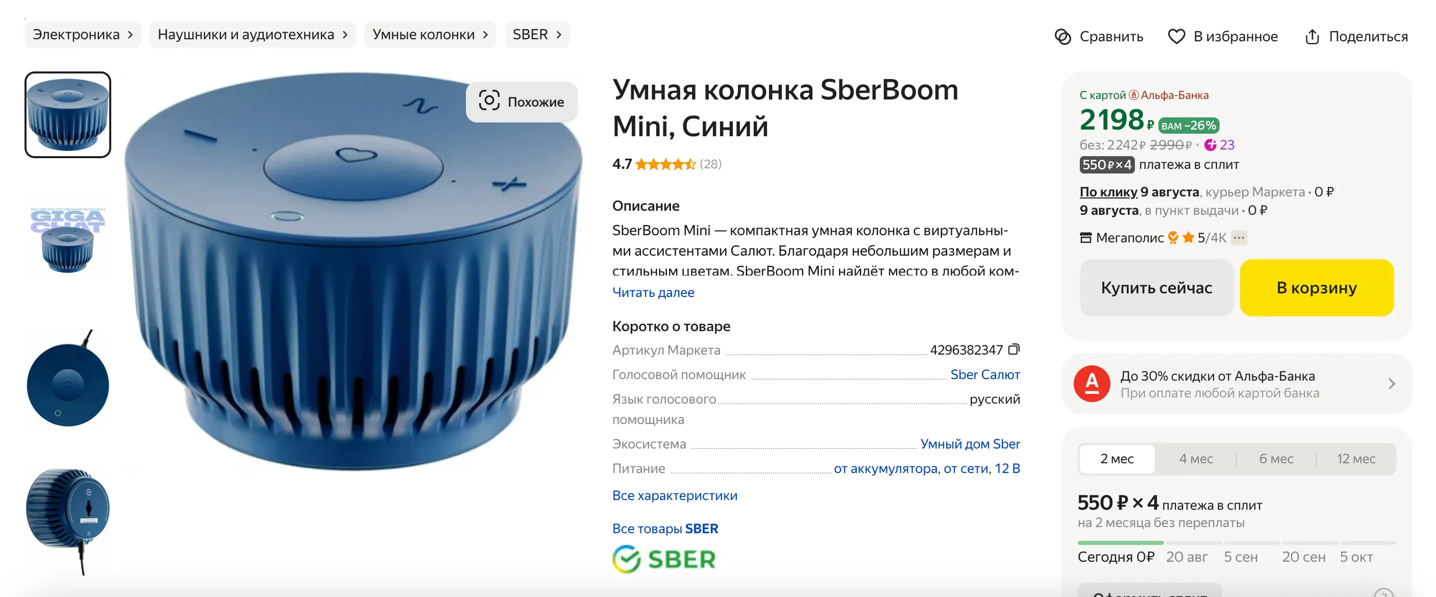 - SberBoom Mini — 2200 рублей, прошлый месяц — 3500 рублей