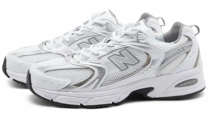 А вот и шикарные бело-серебристые NB 530 – унисекс-кроссовки с сетчатым верхом, динамичными накладками и системой амортизации Abzorb. Это невесомая обувь, которую, как и всегда у New Balance, очень приятно носить.
