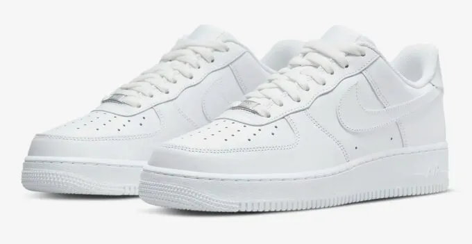 Первый айтем – белые «форсы», выполненные из искусственной кожи. Кроссовки оснащены фирменной системой амортизации Air, а значит, комфорт во время ходьбы вам обеспечен.