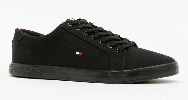 Начинаем с низких деним-кедов Harlow 1D. Модель выполнена в черном цвете, на боковая части обуви красуется логотип Tommy Hilfiger, а язычок и задник украшают фирменные цвета бренда. Отдельного внимания заслуживают многочисленные буквы T, расположившиеся на подошве.
