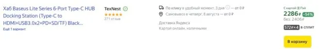 Сейчас на Яндекс Маркете топовый USB-концентратор Baseus Lite Series (WKQX050101) можно забрать всего за 2406 рублей. Ещё вы можете кэшбекнуть под 30% с каждой покупки при оплате картами некоторых банков.