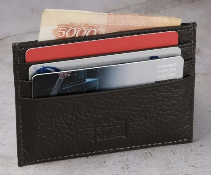 Бюджетный вариант, но главное, что он выпускается по точно такой же технологии, что и оригинальные картхолдеры «Тинькофф». Пусть стоит недорого, но аксессуар делают из натуральной кожи. По словам авторов, производством кошельков для карточек занимаются специалисты из Подмосковья.
