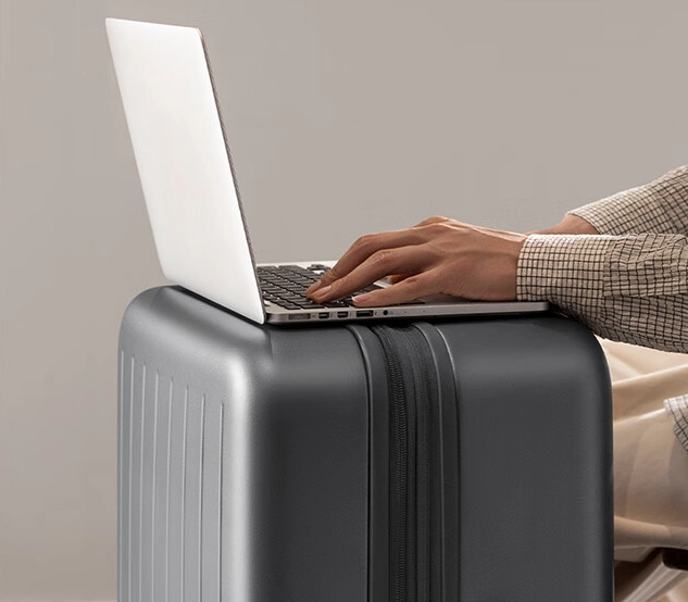 Мы рассказывали про это чемодан — они имеет две половинки, соединенные гофрой. При желании можно увеличить ширину чемодана, чтобы положить больше вещей. Или использовать его в качестве столика, чтобы перекусить или проверить почту на ноутбуке, пока вы ждете транспорта. Также он имеет телескопическую ручку для переноски, колесики, кодовый замок. На нашем рынке таких чемоданов мы не нашли.