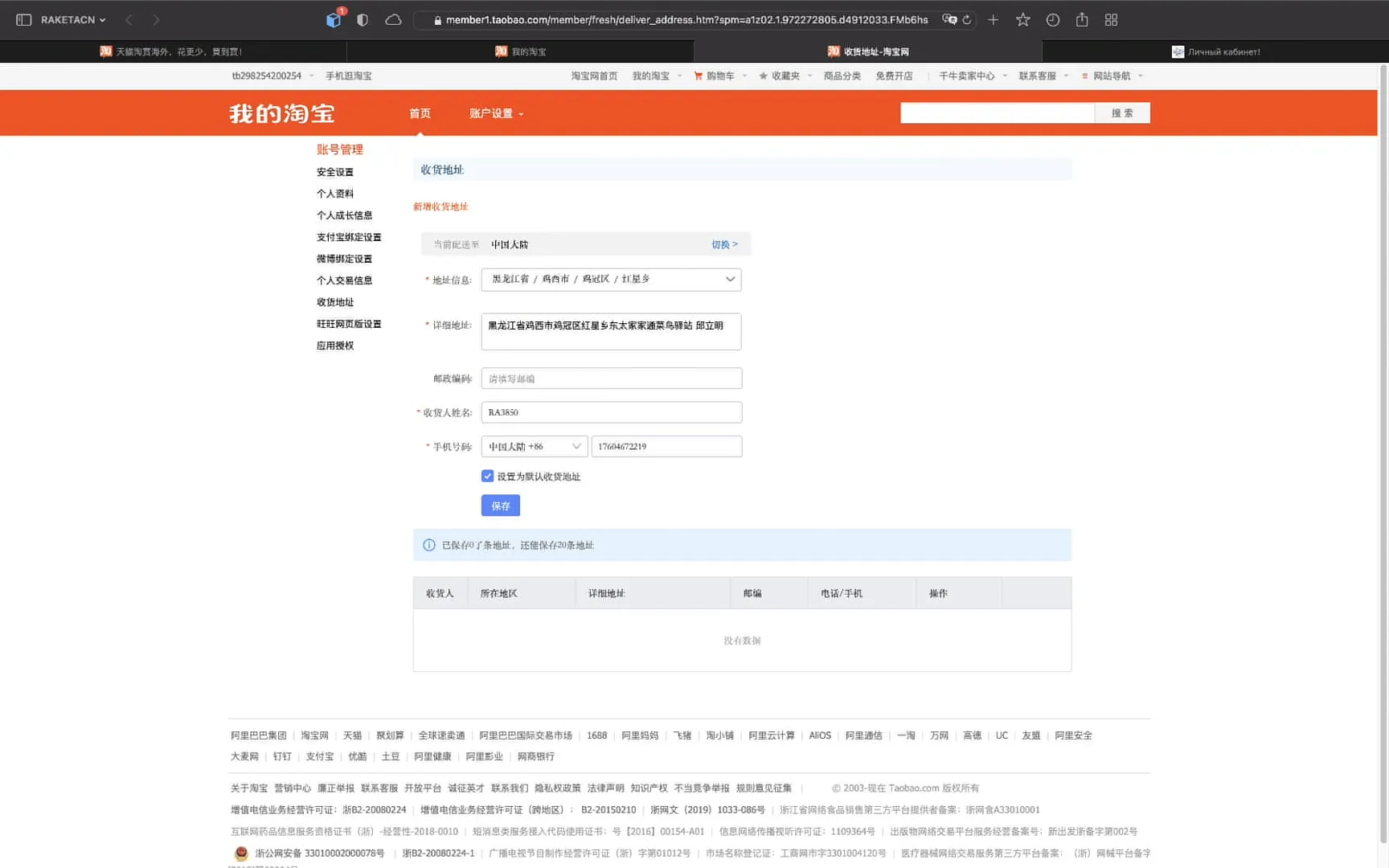 В-четвертых, в личном кабинете RAKETA вы увидите адрес и контакты китайского склада, на который будут приезжать ваши товары. Эти данные нужно ввести в личном кабинете Taobao (или другой площадки). На эту тему даже есть подробный видеогайд.