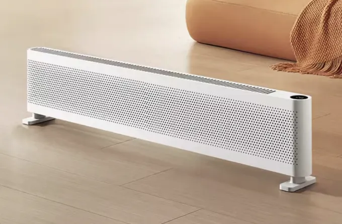 Компактный электрический обогреватель, которого хватит, чтобы поднять температуру воздуха даже в большой комнате. Подключается к обычной розетке, имеет мощность 2200 Вт. Есть сенсорные кнопки для управления, экран с отображением температуры, функции таймера. Мы не нашли эту модель в России, но похожие горизонтальные обогреватели Xiaomi Mijia стоят около 19 тысяч рублей.