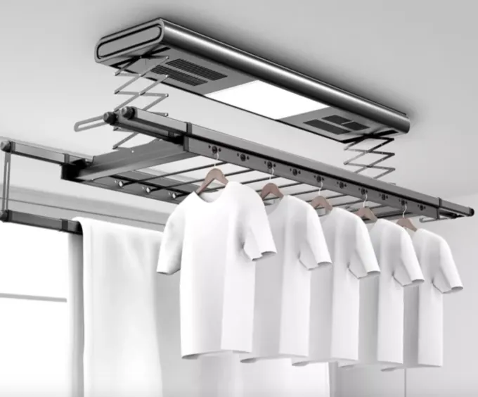 Прибор для дома, о котором вы точно не слышали. Это сушилка для одежды, которая подвешивается к потолку и управляется через пульт ДУ. Есть наборы креплений для разных типов одежды и встроенная LED-лампа. Прибор может прогонять через одежду теплый или холодный воздух, а также уничтожать бактерии с помощью УФ-лампы. С помощью таких устройств китайцы решают проблему сушки вещей в маленьких квартирах, где нет возможности вывесить влажную одежду на балкон.