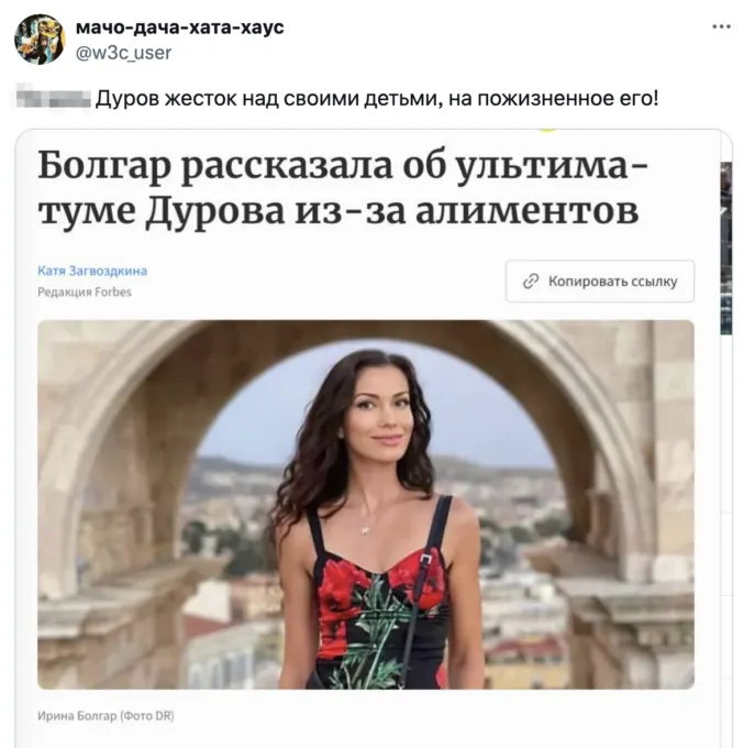 Кто такая Ирина Болгар? Мать троих детей Павла Дурова обвинила его в неуплате алиментов и не только