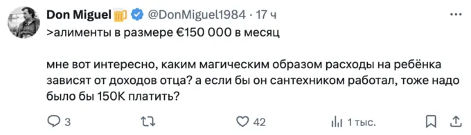 Через месяц — на фоне преследования Дурова французским правосудием — в Forbes написали, что Болгар подала на отца своих детей в суд. В иске, поданном в Женеве, Ирина утверждала, что Павел применил физическое насилие к Давиду. Дама показала справки, подтверждающие сотрясение мозга у ребенка и потерю сна. Спустя несколько месяцев после того, как Болгар попросила суд оставить ей опеку над детьми, Павел Дуров перестал выплачивать алименты — около 150 000 евро в месяц (15,2 млн рублей). Точнее, у Ирины была кредитная карта с лимитом в 150К.
