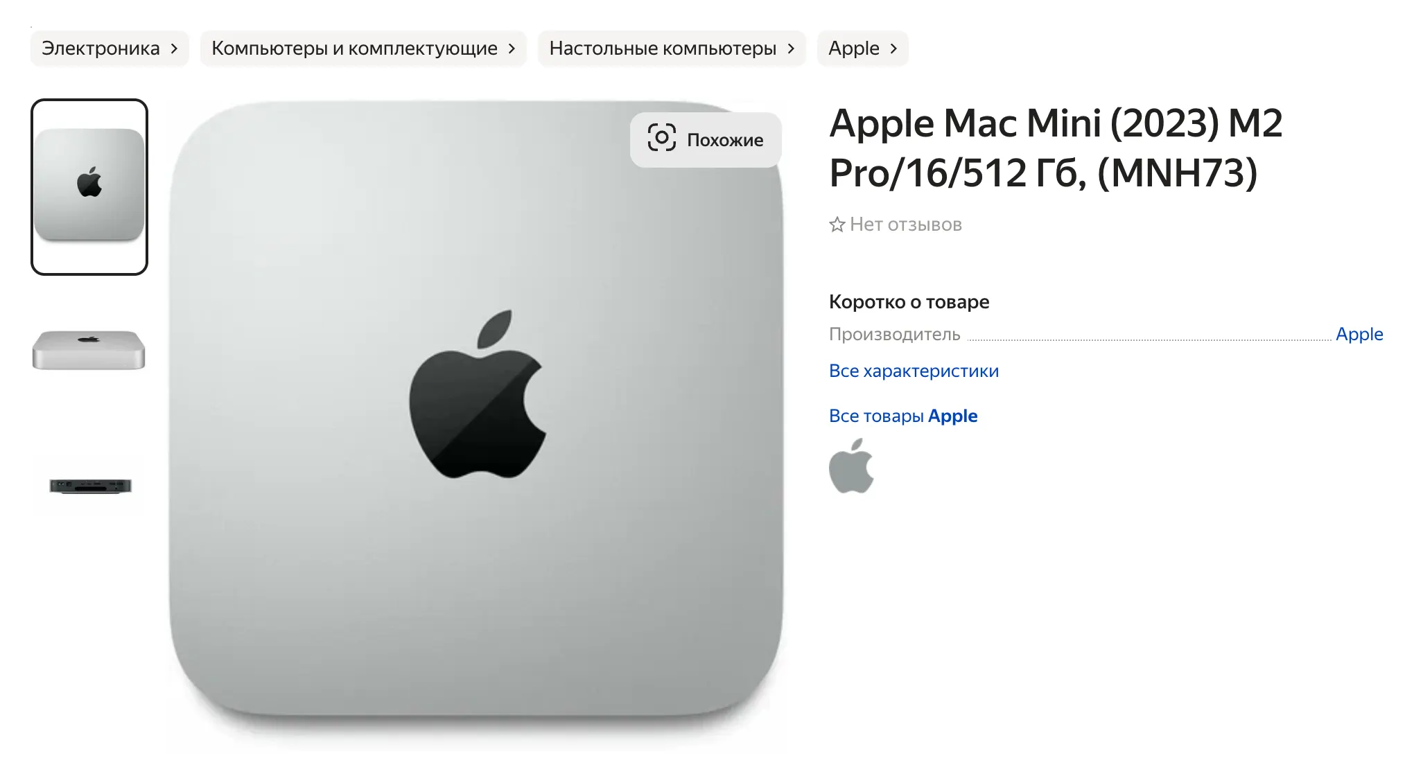 - Mac mini M2 Pro (16/512 Гбайт) — нет в продаже. Прошлый месяц — 184 000 рублей