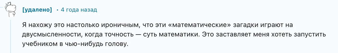 Таким образом, у головоломки есть несколько правильных ответов — все зависит от того, какие вводные данные считать верными. Кажется, на это и рассчитывали авторы загадки — чтобы в комментариях спорили и предлагали разные трактовки вопроса.