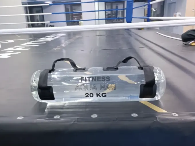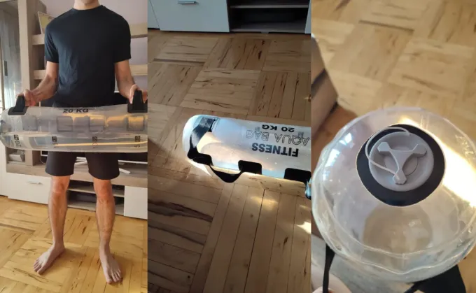 Аксессуар очень простой. Он представляет собой резервуар из прозрачного материала, который удерживает воду. Также есть две регулируемые ручки. Вода заливается через клапан — чем больше жидкости внутри, тем прибор тяжелее. Конкретно этот лот рассчитан максимум на 20 кг.