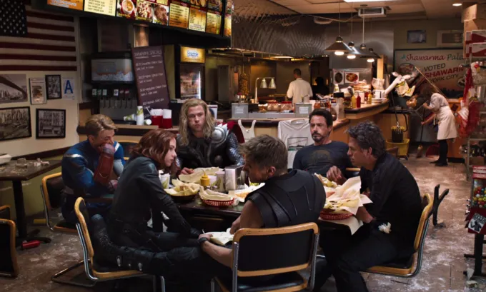Финальной репликой Старка в фильме было пафосно-рекламное обращение, адресованное как бы зрителю: «Что дальше?» Но Роберту Дауни-младшему реплика показалась постной, унылой и неправильной. Его Старк никогда бы не сказал такую базовую чушь. Вместо этого Дауни решил, что нужно сказать что-то отвлеченное и спросить у остальных Мстителей, пробовали ли они когда-нибудь шаурму. Впоследствии это стало еще и сценой после титров, где супергерои молча едят шаверму. Великая, между прочим, сцена.