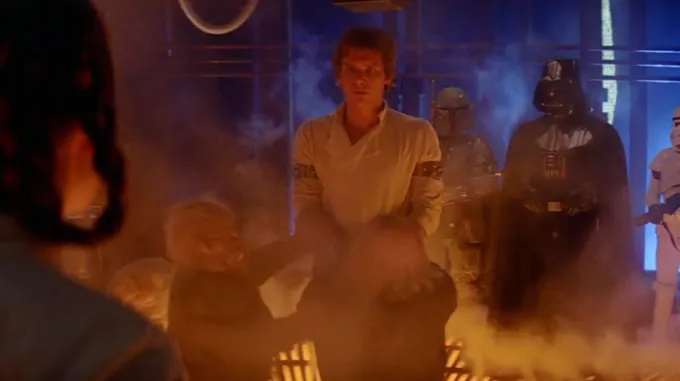 Изначально Хан должен был ответить: «Просто помни об этом, потому что я вернусь». И это слишком слюняво. Мы сразу узнаем любовные диалоги Джорджа Лукаса из второго эпизода. Так вот, Харрисону Форду не нравилась эта реплика и, он убедил режиссера Ирвина Кершнера, что ее нужно заменить. Ну, а тот разрешил Форду внести правку. Так родился один из самых культовых моментов в «Звездных войнах».