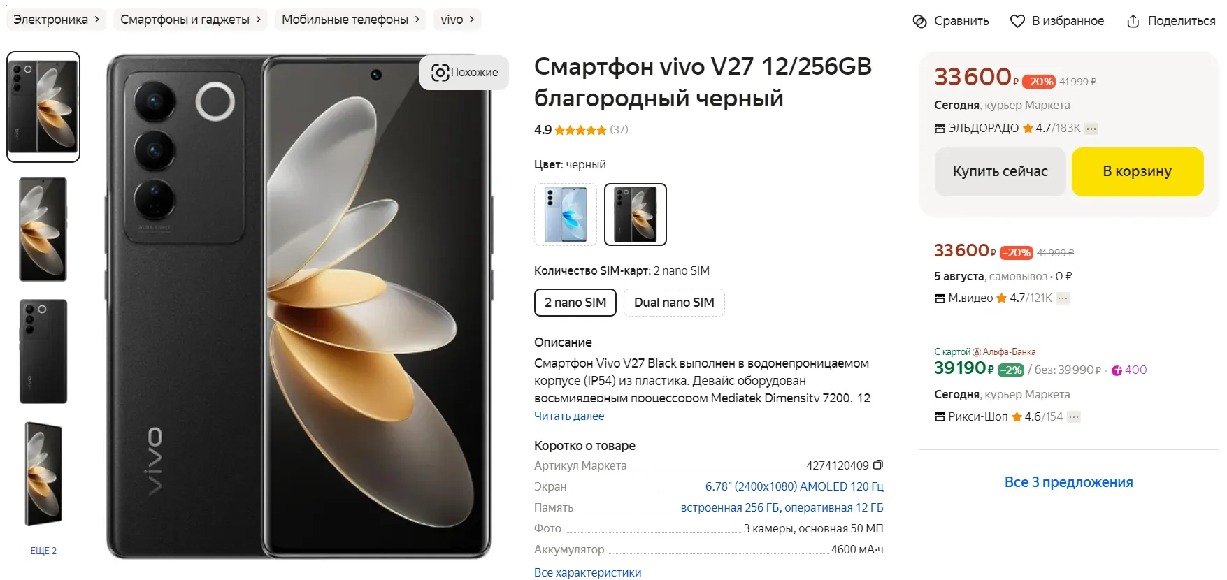 Уверены, что вы даже не слышали про Vivo V27, хотя этот субфлагман появился в России больше года назад. Хитом продаж «двадцать седьмой» не стал из-за завышенного ценника, хотя характеристики у смартфона действительно неплохие.