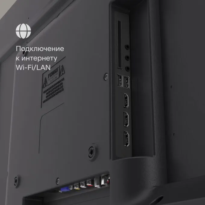 В комплект Tuvio TQ55UFBHV1 входит пульт с голосовым управлением и две дугообразные ножки. Разумеется, этот девайс можно повесить на стену или прицепить к кронштейну через VESA-крепление, но его нужно докупать отдельно. На корпусе телевизора есть порты: 2 х USB-A, 3 х HDMI 2.0, RJ-45 (Ethernet) для проводного интернета, AV-вход, 3,5-мм джек для наушников, оптический аудиовыход и слот CI/CI+. Кроме того, девайс поддерживает Wi-Fi, Bluetooth и Miracast.