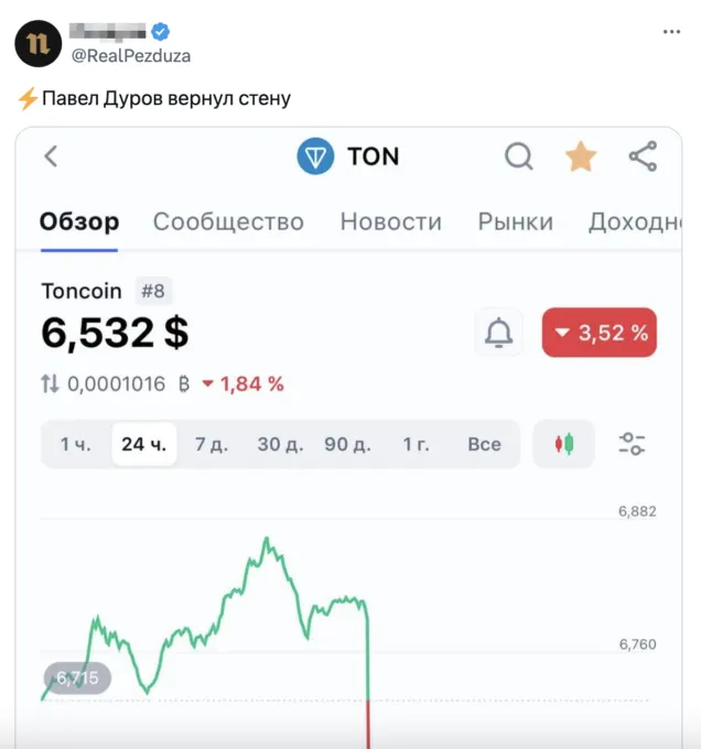 Кстати о крипте. На фоне новостей из Франции курс TON — связанной с Telegram криптовалютой — упал примерно на 15%. Хотя аналитики считают, что это не очень сильный обвал — ждали краха на 35-40%.
