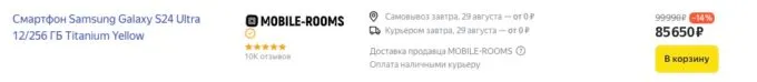 Сейчас на Яндекс Маркете лучший Android-флагман 2024 года Samsung Galaxy S24 Ultra можно урвать за смешные 85 650 рублей.