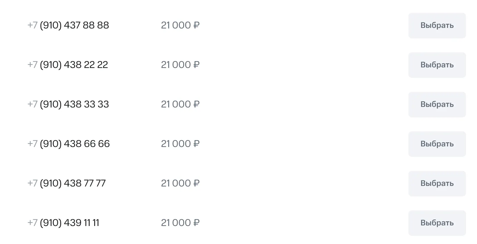 Вот пруф — красивые номера у МТС за 21 тысячу рублей: