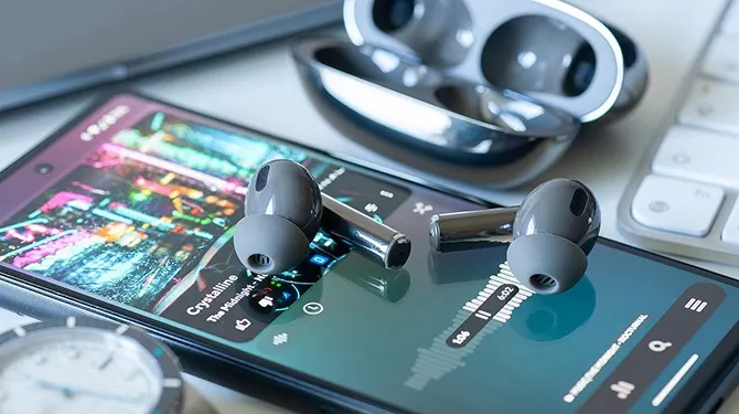 Что по спекам? Девайс выполнен в виде затычек с короткими ножками и силиконовыми амбушюрами, а также овальным кейсом — идеально для поклонников дизайна эппловских «прошек». При этом в каждом наушнике установлены два драйвера на 11 и 6 мм с технологией Dynamic Bass и три микрофона с диапазоном чувствительности до 4000 Гц и ИИ-шумоподавлением, отвечающим за слышимость во время звонков. Как правило, есть и защита от влаги и пыли по надежному стандарту IP55 — гаджет можно смело носить в качалку или под дождем.