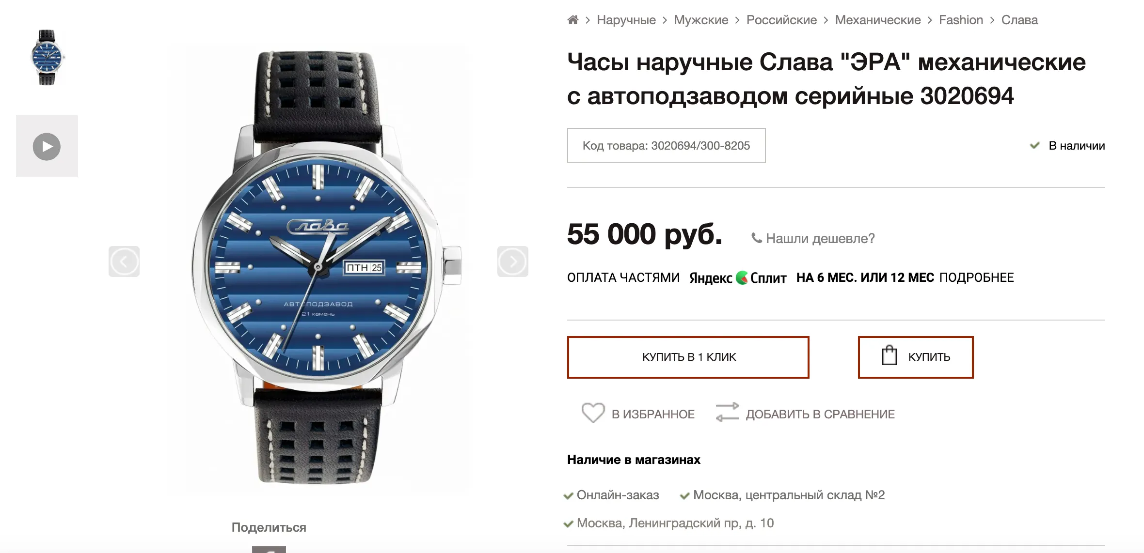 Самый доступный вариант — часы «Эра» — обойдутся в 55 тысяч рублей.