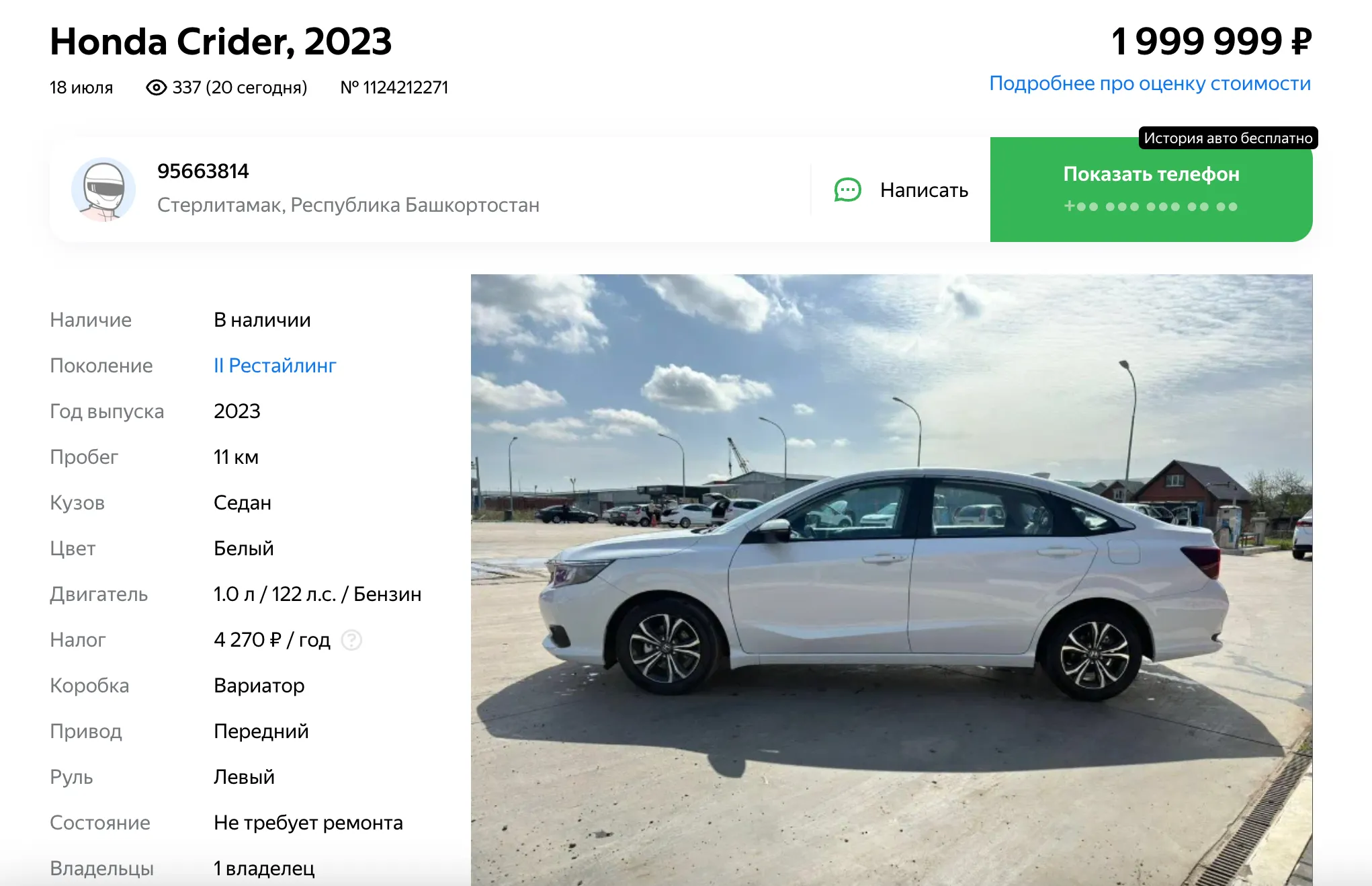 Журналисты «Автоновостей дня» нашли вариант 2023 года выпуска за 1 850 000 рублей — продавец находится в городе Заринск (Алтайский край). Это меньше, чем просят за новую Lada Vesta.