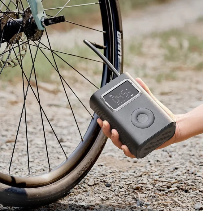 Mijia Pump — компактный компрессор, который работает от аккумулятора, имеет комплектный шланг, набор насадок и пресеты (шина автомобиля, велосипеда, мотоцикла, футбольный или баскетбольный мяч). Также у гаджета есть дисплей, на который выводится информация о давлении и режимах работы. Стоит такой компрессор около 3000 рублей.